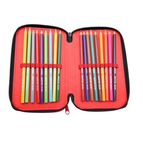 Η κασετίνα Giotto Spiderman διαθέτει τρεις θήκες για άψογη οργάνωση και περιλαμβάνει πλούσιο γέμισμα με ποιοτικά προϊόντα Giotto και Lyra:
