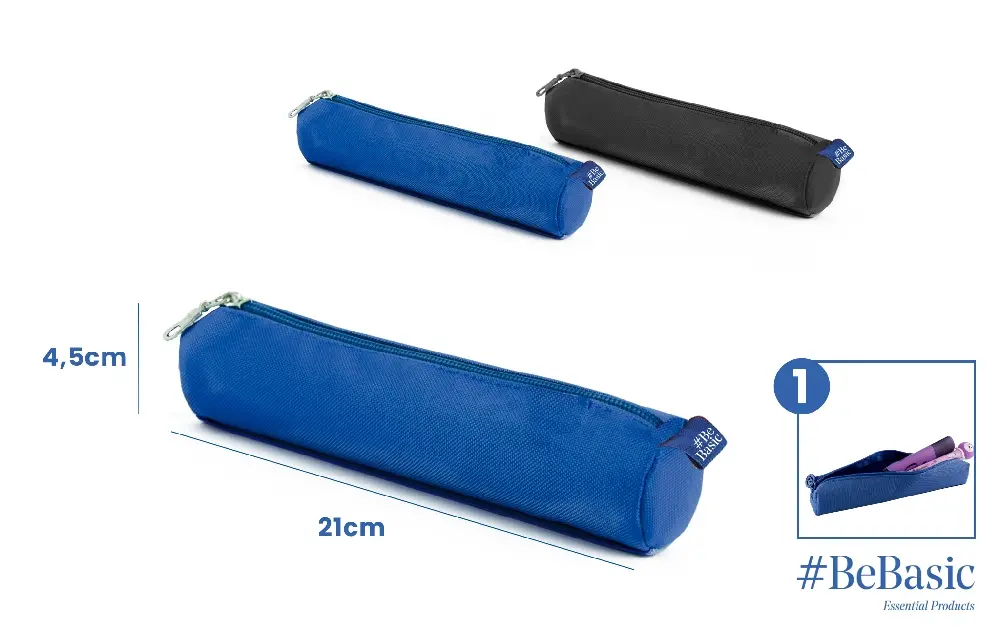 Κασετίνα βαρελάκι BeBasic μαύρο,μπλέ στρογγυλή 21χ4,5εκ S032 τυχαια επιλογή χρώματος