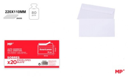 Φάκελλα λευκα 80γρ με αυτοκόλλητο 11 Χ 22εκ πακ 20 τεμ- MP PS003