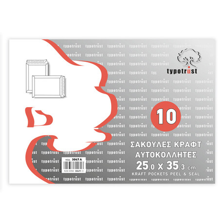 Φάκελλα σακούλες αλληλογραφίας κράφτ καφέ με αυτοκόλλητο 25 Χ 35εκ πακ 10 τεμ 3047-10