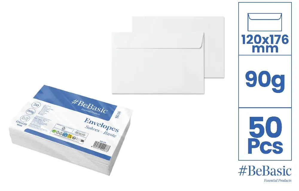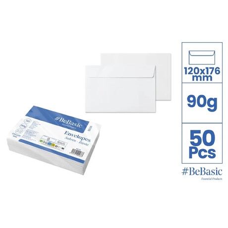 Φάκελοι Αλληλογραφίας με Αυτοκόλλητο BeBasic 50τμχ 12x17,6εκ. 90gr σε Λευκό Χρώμα S048