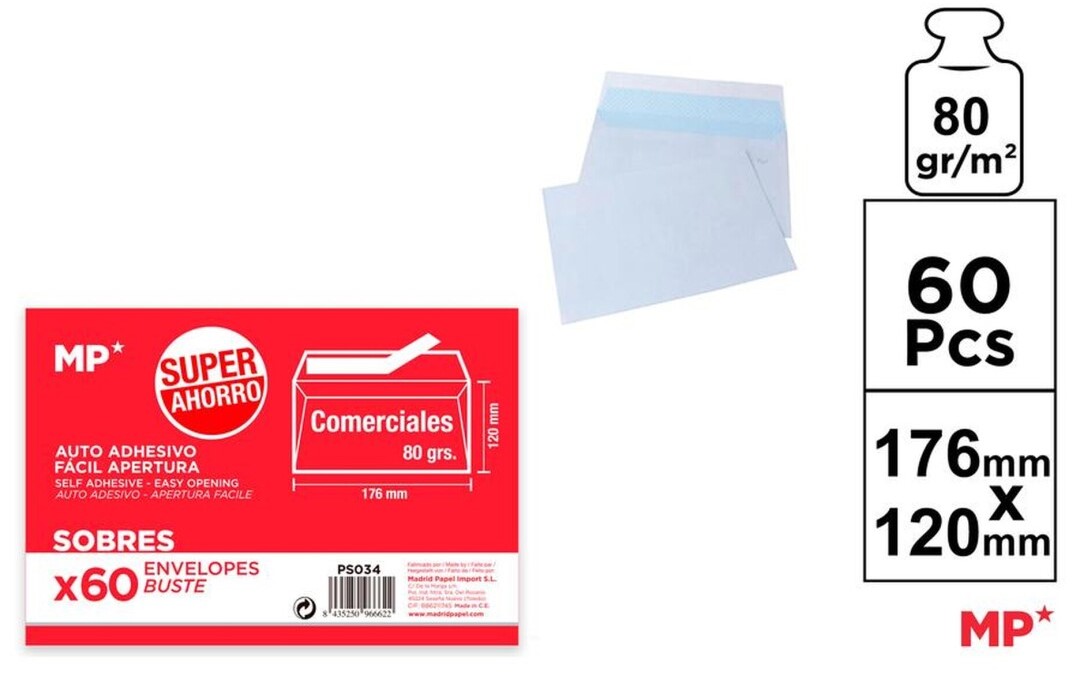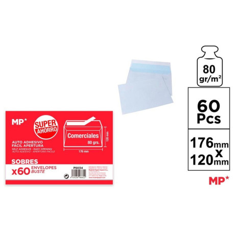 Φάκελλα λευκα 80γρ με αυτοκόλλητο 12 Χ 17,6εκ πακ 60 τεμ- MP PS034