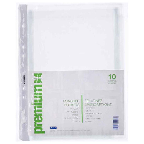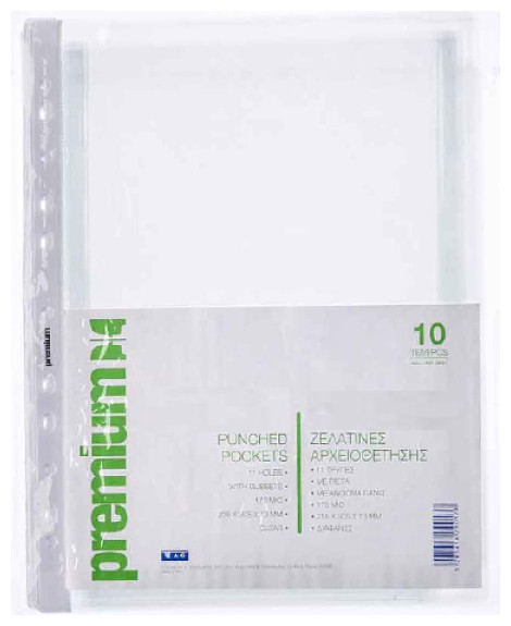 Ζελατίνες μέ τρύπες αρχειοθέτησης Α4 γιά εγγραφα τύπου Π "ματ" 10τεμ 35mic Premium 25964