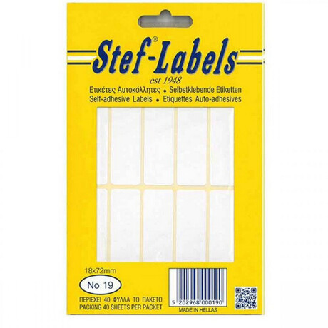 Ετικέτες Αυτοκόλλητες Λευκές Stef Label 18x72 mm Stf19 (400 Ετικέτες) σε φύλλο 10x15 cm