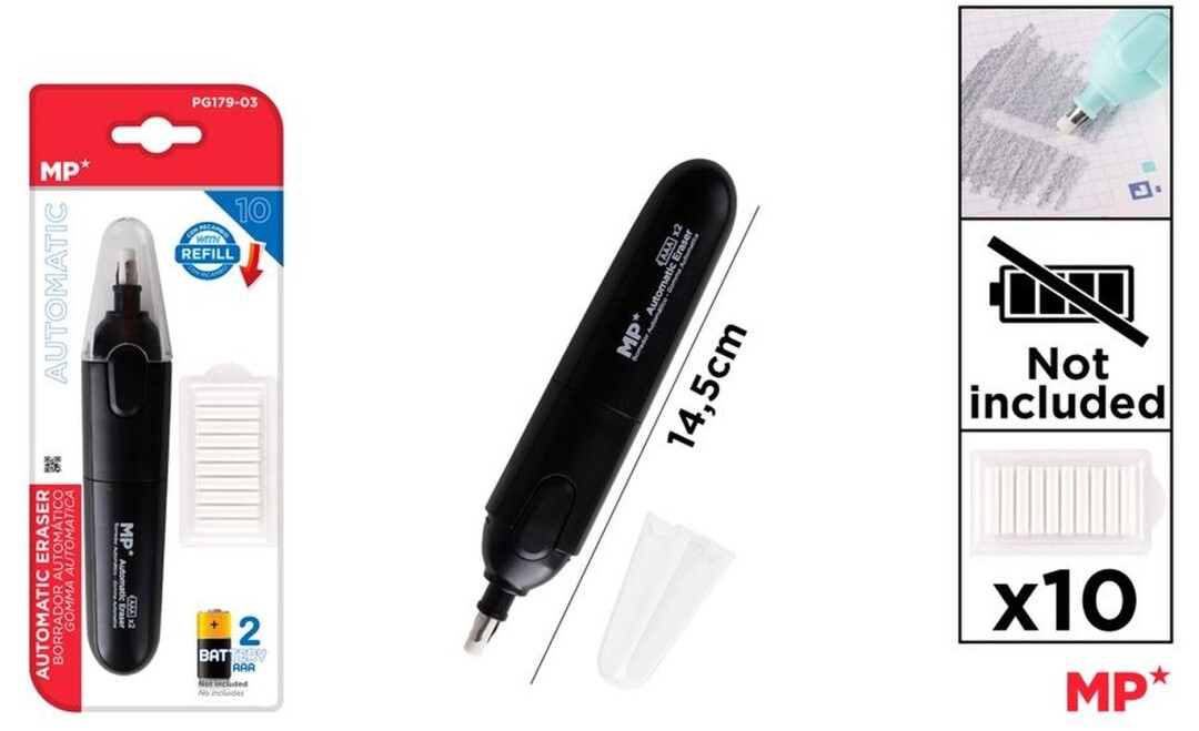 Γόμα ηλεκτρική μπαταρίας μέ 10 ανταλλακτικές γόμες MP PG179-03 εξωτερικό χρώμα μαύρο