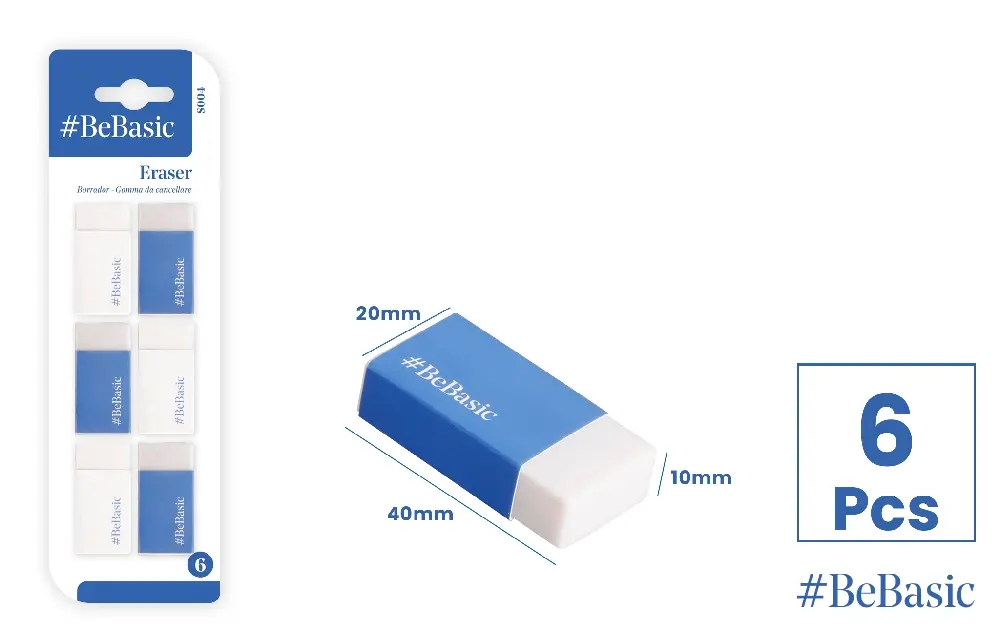 Γόμα λευκή μεγάλη 20χ40χ10mm σέτ 6 τεμαχίων BeBasic S004