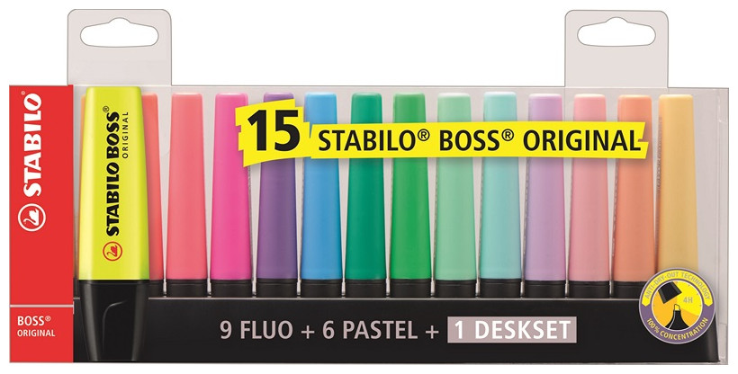 Τώρα το γραφείο παίρνει χρώμα και η δουλειά σας γίνεται ακόμα πιο συναρπαστική με αυτό το σετ 15 τεμαχίων STABILO BOSS Original!