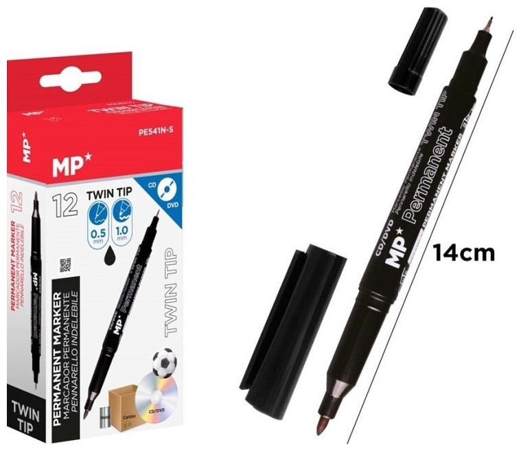 Μαρκαδόρος για CD/DVD Ανεξίτηλος MP μέ 2 μύτες 0,5mm & 1,0mm Μαύρος PE541N-S