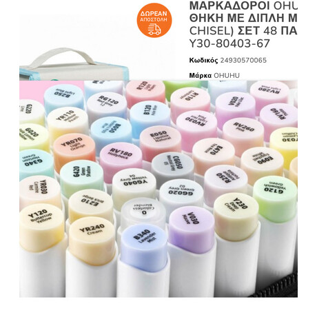 Ανακάλυψε την απαλή πλευρά της τέχνης με το σετ OHUHU 48+1 Pastel Colors, σχεδιασμένο για όσους αγαπούν τις ρομαντικές αποχρώσεις και την ακρίβεια στην πινελιά. Με διπλή μύτη (Brush & Chisel) και 1 blender marker, αυτό το σετ είναι ιδανικό για καλλιτέχνες, illustrators, σχεδιαστές και λάτρεις του journaling.