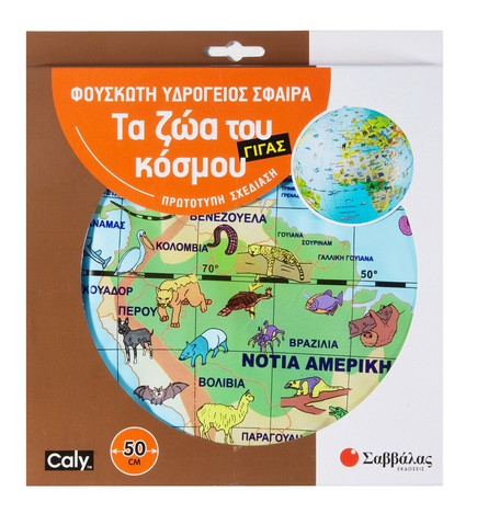 Φουσκωτη Υδρογειος Σφαιρα: τα ζωα του Κοσμου Γιγας 50cm