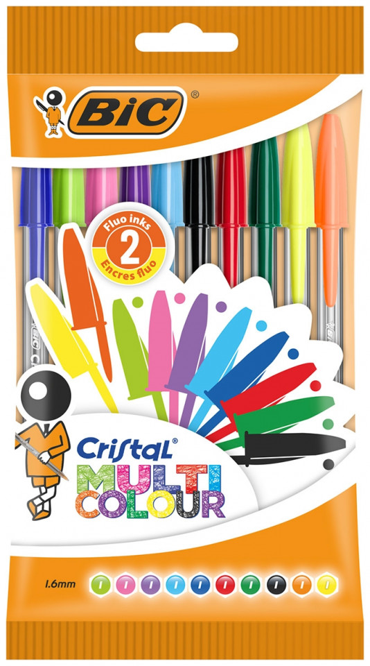 Στυλό Bic Διαρκειας Cristal large 1,6mm Assorted 10τμχ multi colour 16MULTI
