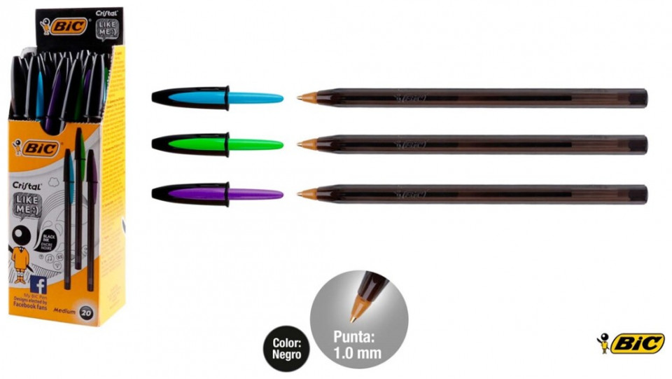Στυλό Bic Διαρκειας Cristal negro medium 1,00mm Μαύρης γραφής(τυχαία επιλογή χρώματος καπακιού) 3086123415805