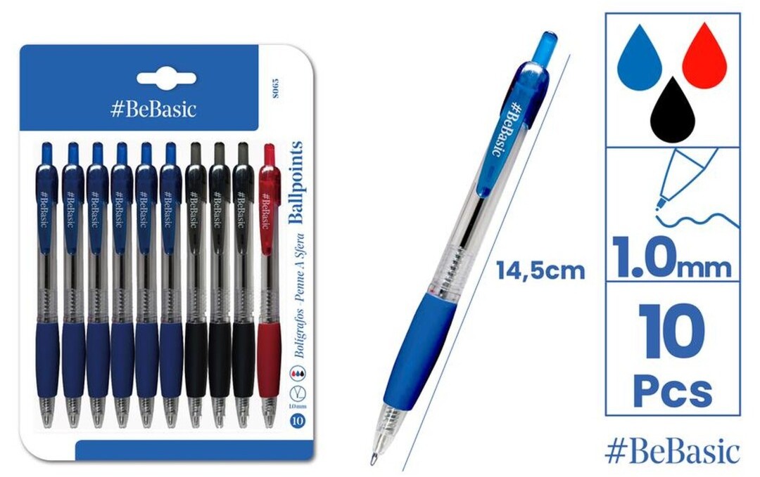 Στυλό διαρκείας μέ κουμπί σέτ 10 τεμαχίων 6 μπλέ,3 μαύρο,1 κόκκινο BeBasic S065