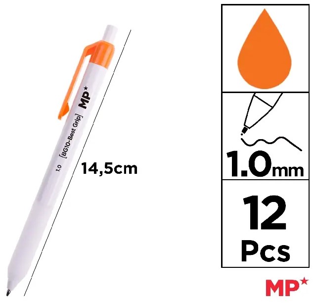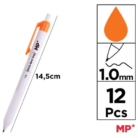 Στυλό διαρκείας μέ κουμπί ,μύτη 1.00mm MP μέ Πορτοκαλί μελάνι PE252NA-S