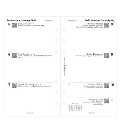 Ανταλλακτικά Φύλλα | Filofax | Personal Ημερολόγιο Εβδομάδα σε δύο σελίδες ελληνικό 2026 | 26-68467