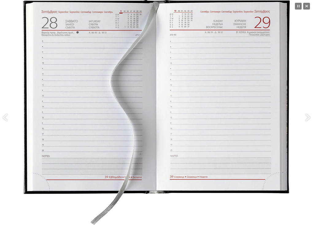 Η πλέον αναγνωρίσιμη σειρά της συλλογής μας, με χαρακτηριστικό γράφημα. Έκδοση page-a-day με Σάββατο/Κυριακή σε ξεχωριστή σελίδα.