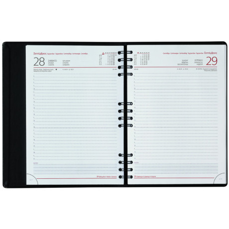 Από πιστοποιημένο χαρτί FSC, Sector Σπιράλ, Αναδίπλωση 360°, Λάστιχο 8mm, Σ/Κ ξεχωριστά, Περφορέ γωνίες, Εκτύπωση εξωφύλλου με βαθυτυπία.