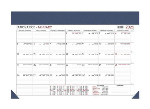 Πλανόγραμμα Ημερολόγιο Μηνιαίο 2026 35 x 49,5cm Μπλε