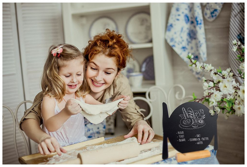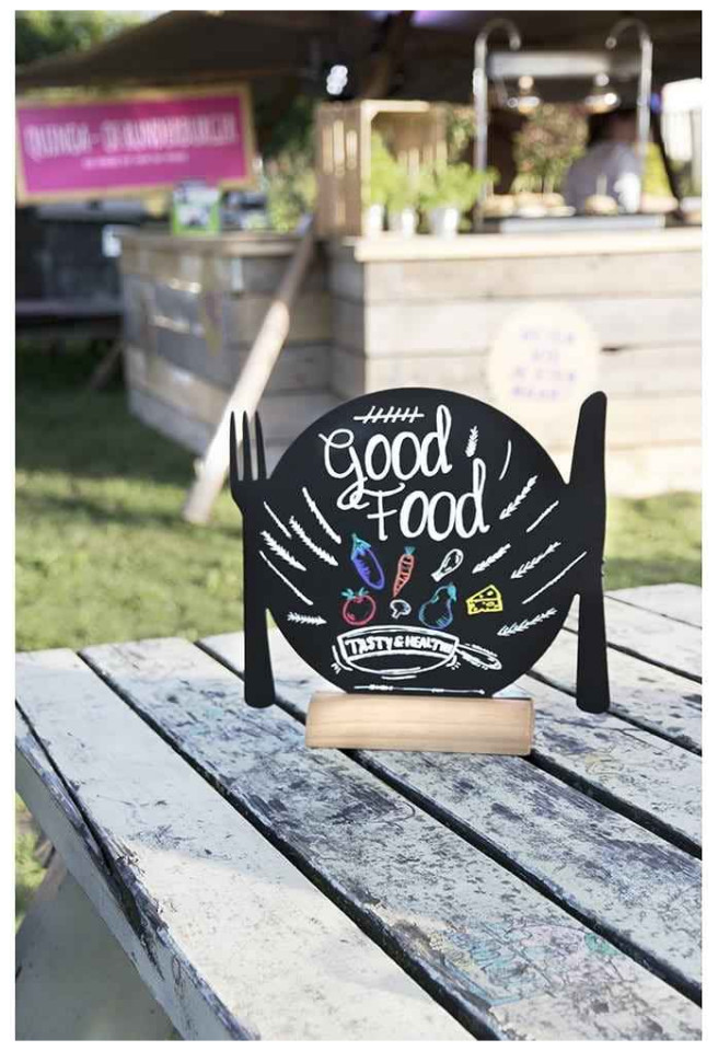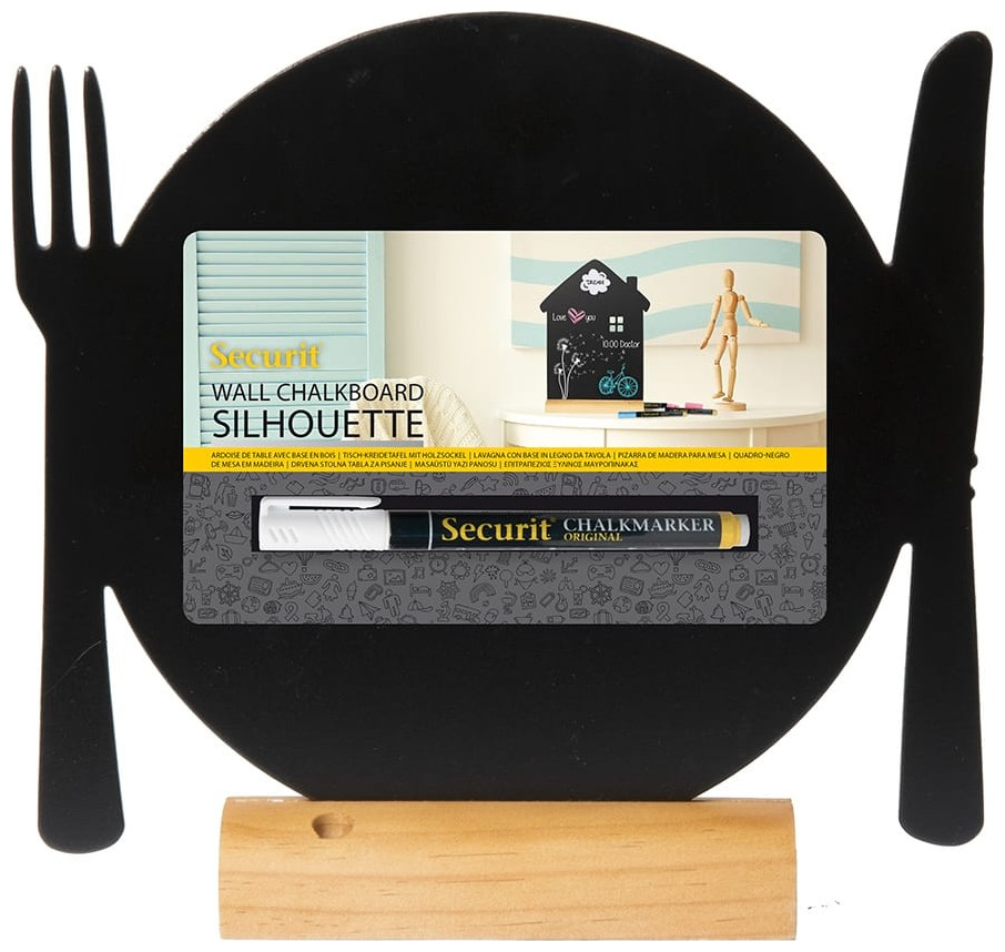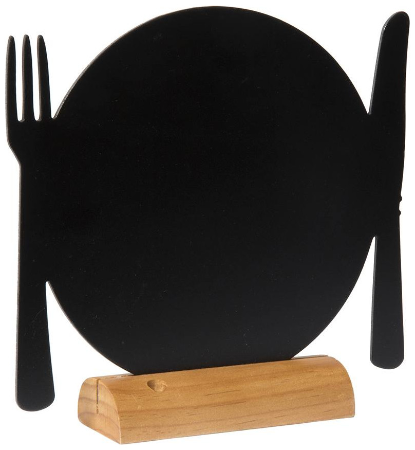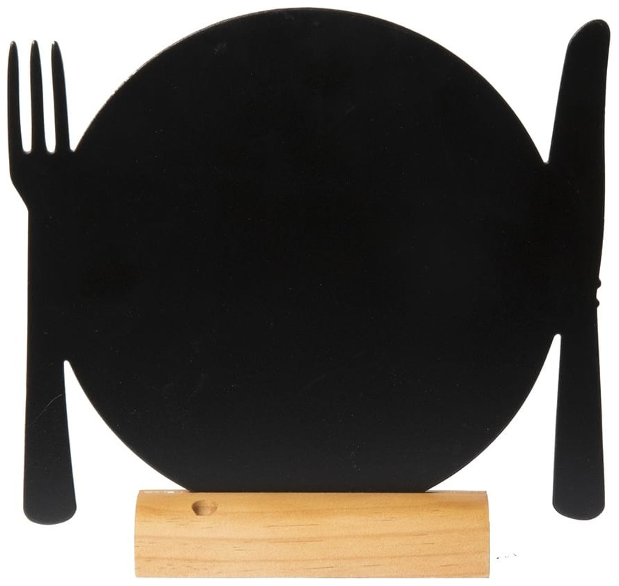 – Μαυροπίνακας κιμωλίας διπλής όψης σε σχήμα πιάτου με 2 μαχαιρο-πήρουνα που λειτουργεί σημείο υπενθύμισης ή καλλιτεχνικής έκφρασης και διακόσμησης
