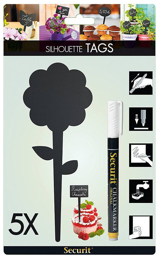 Πινακάκια Μαυροπίνακα Securit Καρφωτά Διπλής Όψης Λουλούδι Σετ 5 τεμαχίων TAG-FLOWER-5