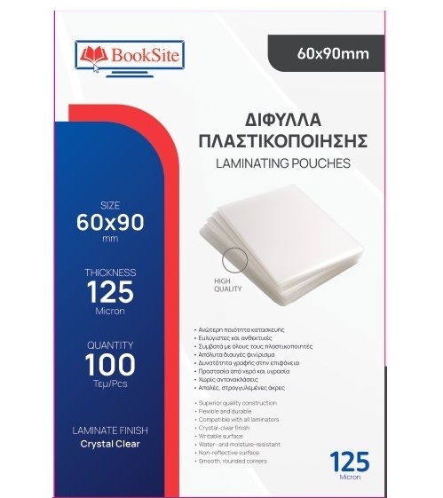 ΖΕΛΑΤΙΝΕΣ - Δίφυλλα Πλαστικοποίησης Booksite 60×90mm 125 micron 100 τμχ PL6090125