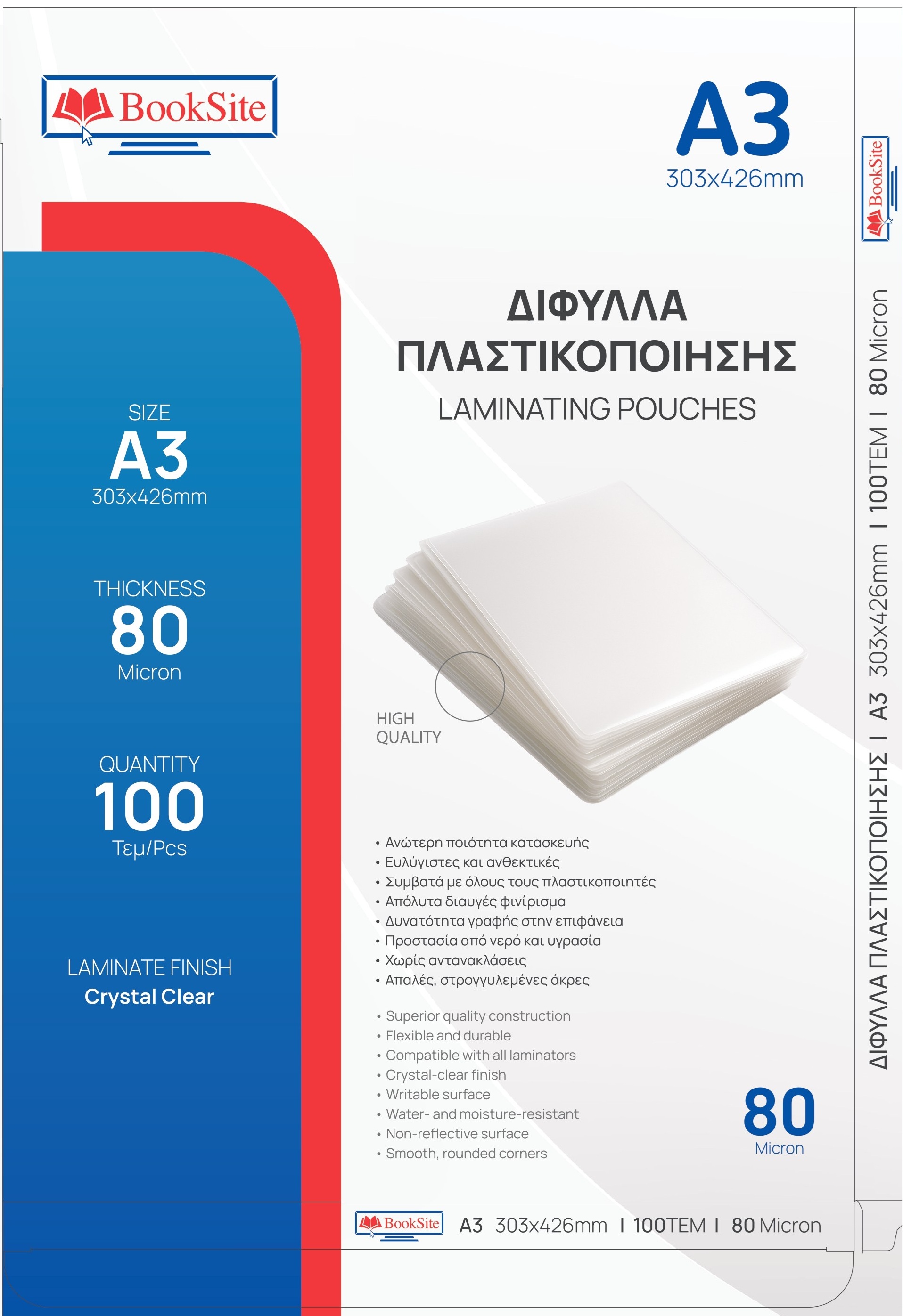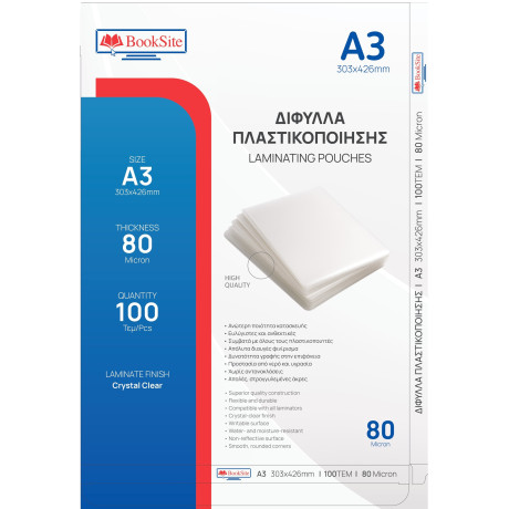 ΖΕΛΑΤΙΝΕΣ - Δίφυλλα Πλαστικοποίησης Booksite Α3 303 x 426mm 80 micron 100 τμχ PL30342680