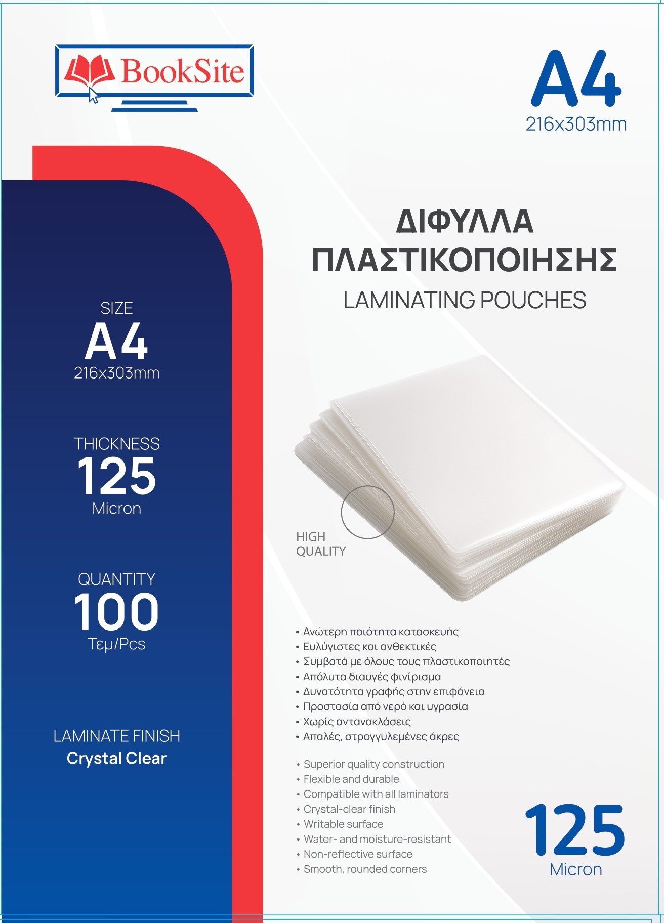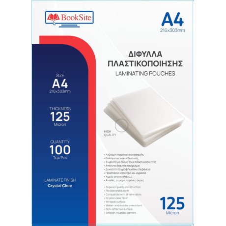 ΖΕΛΑΤΙΝΕΣ - Δίφυλλα Πλαστικοποίησης Booksite Α4 216 x 303mm 125micron 100 τμχ PL216303125