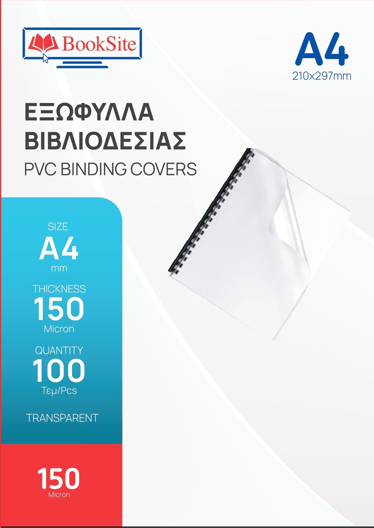 Εξώφυλλα Βιβλιοδεσίας Πλαστικά PVC Διαφανές Booksite Α4 210 χ 297mm 150micron BC210297150