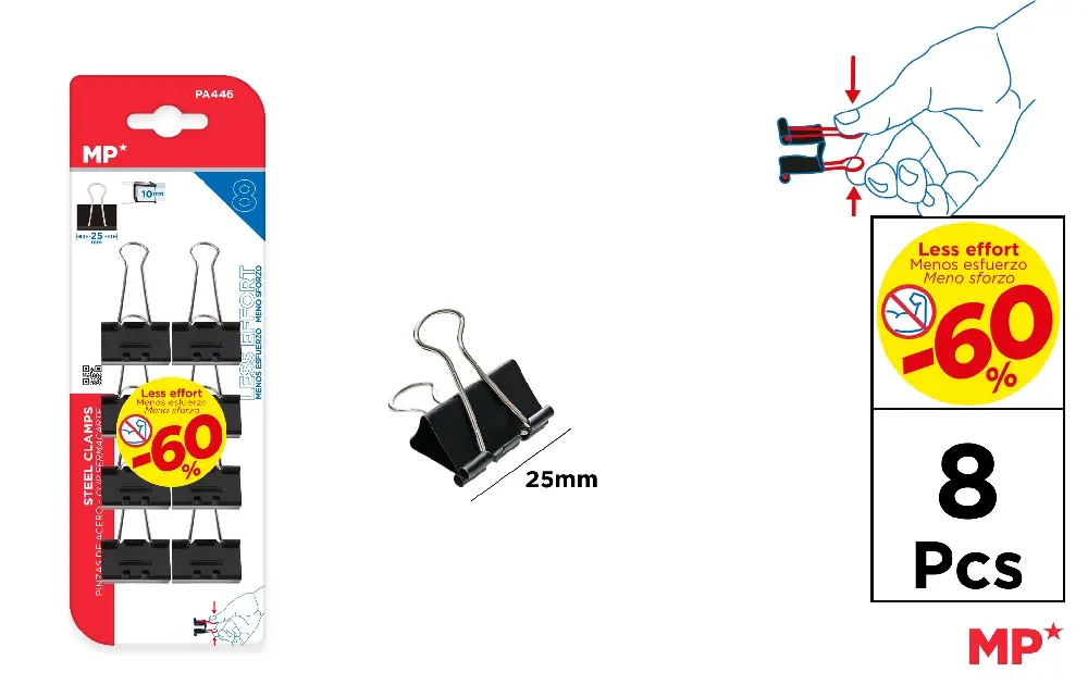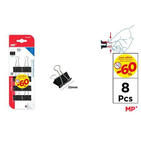 Πιάστρες κλίπς MP -60% LESS PRESSURE Μεταλλικές Μαύρες 25mm 8 τμχ PA446