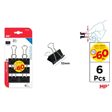 Πιάστρες κλίπς MP -60% LESS PRESSURE Μεταλλικές Μαύρες 32 mm 6 τμχ PA445