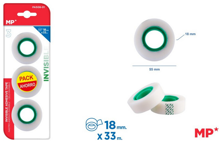 Σελοτέιπ - Κολλητική Ταινία Γαλακτώδες Λευκή MP (ΣΕΤ 3 ΤΕΜΑΧΙΩΝ) 19mm x 33m PA508-01