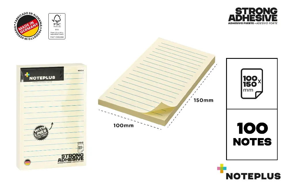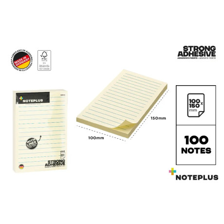 Αυτοκόλλητα Χαρτάκια Σημειώσεων ΔΥΝΑΤΗΣ ΚΟΛΛΑΣ Κίτρινα ριγέ 100x150mm NOTEPLUS 100τεμ N006