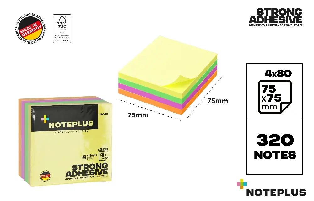 Αυτοκόλλητα Χαρτάκια Σημειώσεων ΔΥΝΑΤΗΣ ΚΟΛΛΑΣ ΝΕΟΝ Κύβος 320φυλλα 76x76mm NOTEPLUS N015