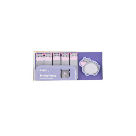 Αυτοκόλλητα Χαρτάκια Σημειώσεων | I-Total Sticky Notes 45x41mm και Sticky Bookmarks 45x41mm | Hippo | 73x73mm | 20 Φυλλών | Xl3106l