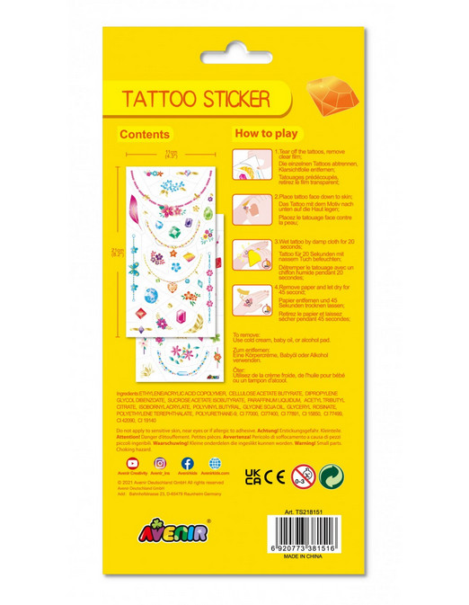 - Εύκολη εφαρμογή: τοποθετήστε το τατουάζ πάνω στο δέρμα, βρέξτε το χαρτί με ένα υγρό πανί για 20 δευτερόλεπτα και αφαιρέστε, αφήνοντας να στεγνώσει για 45 δευτερόλεπτα