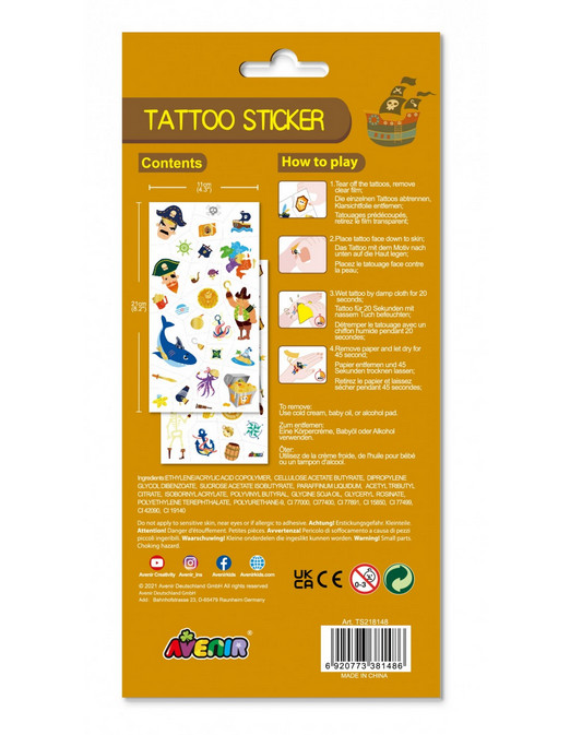- Εύκολη εφαρμογή: τοποθετήστε το τατουάζ πάνω στο δέρμα, βρέξτε το χαρτί με ένα υγρό πανί για 20 δευτερόλεπτα και αφαιρέστε, αφήνοντας να στεγνώσει για 45 δευτερόλεπτα