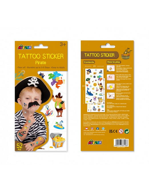 Συσκευασία 52 αυτοκόλλητων-τατουάζ σε διάφορα, εντυπωσιακά σχέδια, για να κάνουν μοναδικούς συνδυασμούς.