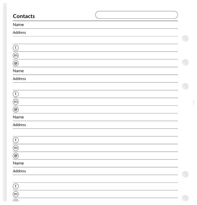 Ανταλλακτικό με δύο στήλες για να καταγράφεται όλες τις λεπτομέρειες των επαφών σας.