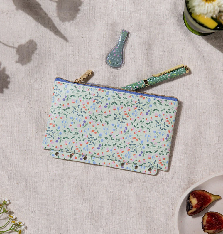 Πείτε γεια στη νέα αγαπημένη σας συλλογή Meadow. Αυτή η πανέμορφη θήκη με μοτίβο και φερμουάρ σε αποχρώσεις της λεβάντας, του ροζ και του πράσινου είναι ιδανική για να μεταφέρετε τη γραφική σας ύλη. Έχει σχεδιαστεί για να χωράει στο Organizer ή Clipbook μεγέθους Personal και Α5.