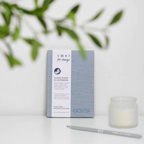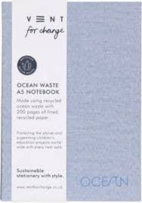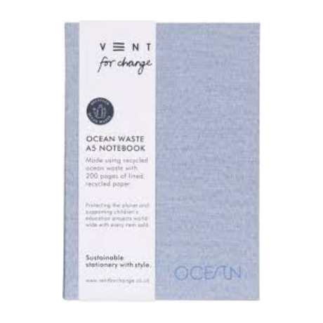 Αυτό το τετράδιο A5 κατασκευάζεται από 55% ανακυκλωμένο πλαστικό από τον ωκεανό και 45% ανακυκλωμένο πλαστικό μετά την κατανάλωση. Το σκληρό εξώφυλλο έχει όμορφο πράσινο χρώμα φύκια, με την λέξη “Ocean” διακριτικά χαραγμένη στο εμπρόσθιο μέρος. Με 200 γραμμωμένες σελίδες από 100% ανακυκλωμένο χαρτί 80gsm, αποτελεί την ιδανική προσθήκη στη συλλογή οικολογικών σας γραφικών ειδών.
