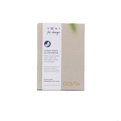 Αυτό το τετράδιο A5 κατασκευάζεται από 55% ανακυκλωμένο πλαστικό από τον ωκεανό και 45% ανακυκλωμένο πλαστικό μετά την κατανάλωση. Το σκληρό εξώφυλλο έχει όμορφο πράσινο χρώμα φύκια, με την λέξη “Ocean” διακριτικά χαραγμένη στο εμπρόσθιο μέρος. Με 200 γραμμωμένες σελίδες από 100% ανακυκλωμένο χαρτί 80gsm, αποτελεί την ιδανική προσθήκη στη συλλογή οικολογικών σας γραφικών ειδών.