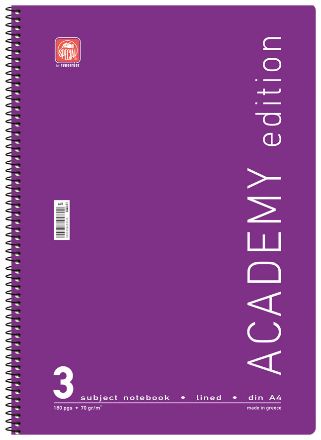 Τετράδιο Σπιράλ 3 Θεμ. Academy Α4 4533Α Μωβ