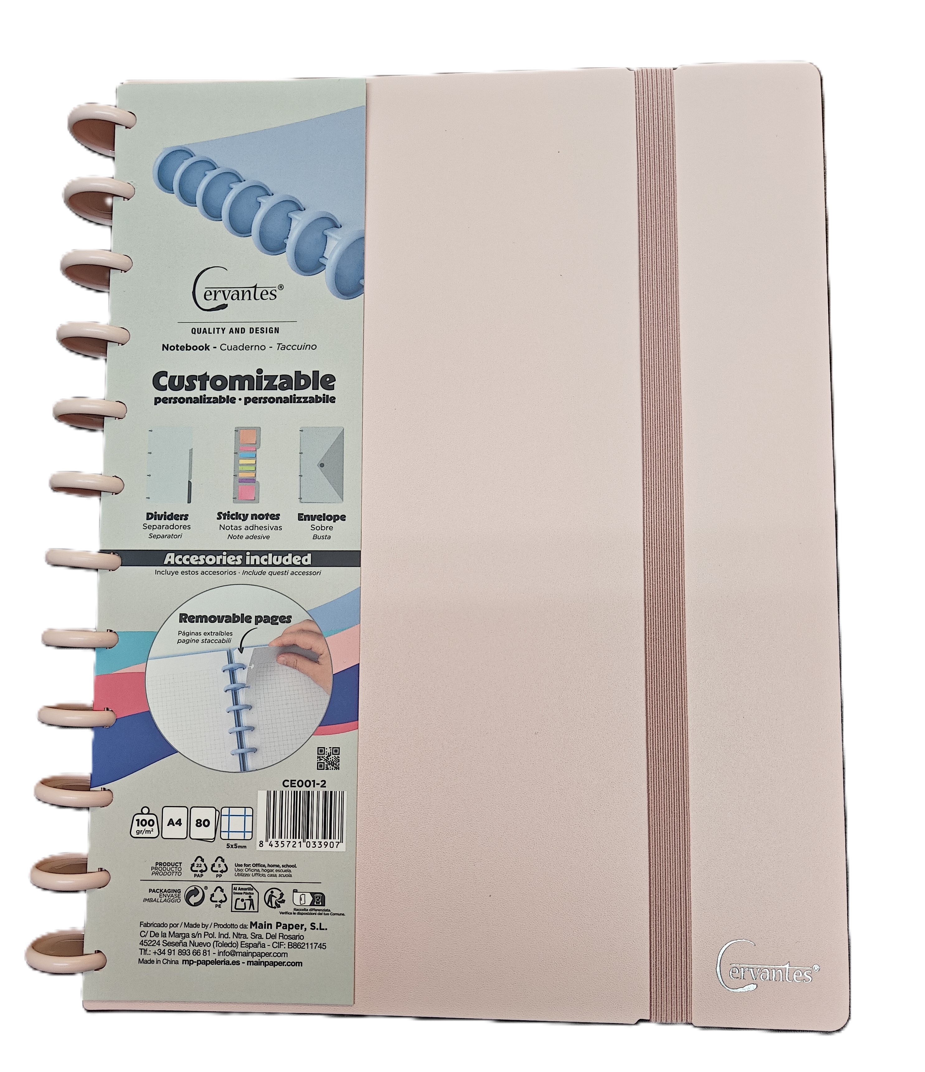 Τετράδιο Σπιράλ Cervantes Customize Α4 Καρέ 4 Θεμάτων Pastel Ρόζ + Φάκελος Κουμπί CE001-2PINKPASTEL