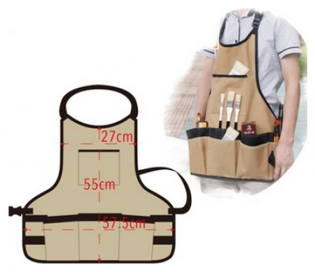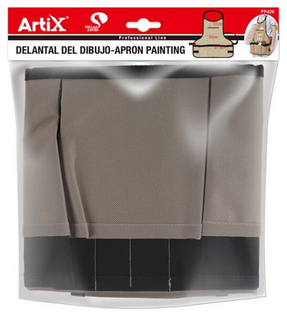 Επαγγελματική ποδιά ζωγραφικής. Ρυθμιζόμενο σχέδιο σε διαφορετικές επιδερμίδες σώματος, εύκολο στη χρήση. Πλένεται και αφαιρούνται εύκολα λεκέδες χρώματος. Με διαφορετικές τσέπες για να έχετε στη διάθεσή σας όλα τα εργαλεία ζωγραφικής όπως πινέλα, πινέλα, σπάτουλες κ.λπ. Διαστάσεις: 55 cm ύψος x 57,5 cm πλάτος.