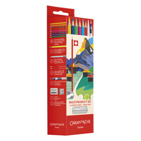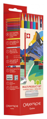 Caran d’Ache Σετ Ξυλομπογιές 16 τεμαχίων σε μεταλλική κασετίνα + ξύστρα + γόμα 3000.316