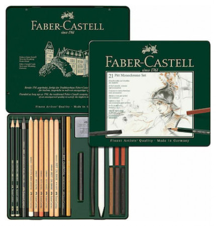 Ξυλομπογιές 21 χρωμ μεταλλική κασετίνα castell Pitt Monochrome 112976
